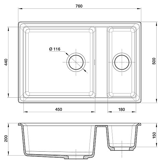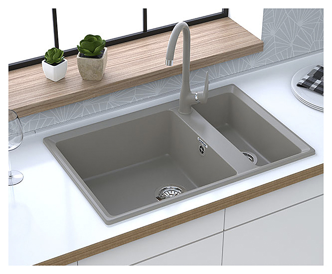 Кухонная мойка GranFest Level GF-LV-760K предназначена для установки в частных домах, квартирах, офисах, отелях, гостиницах и на различных предприятиях для мытья столовых принадлежностей, посуды, приборов, инвентаря и продуктов питания. Модель оснащена дополнительной чашей. Изделие выполнено из мрамора, который устойчив к образованию пятен и воздействию высоких температур. Особенности: