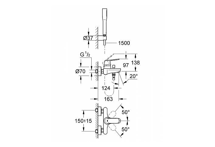 Смеситель для ванны и душа настенный Grohe Eurosmart Cosmopolitan 32832000 предназначен для использования в ванных помещениях для подачи горячей и холодной воды. Модель является частью коллекции Eurosmart Cosmopolitan, что позволяет выдержать дизайн кухни и ванной комнаты в едином стиле и оснащена душевым гарнитуром, включающим в себя однорежимную лейку, настенное крепление и пластиковый шланг с системой TwistFree. Однорычажный тип управления позволяет очень быстро и плавно регулировать подачу воды одной рукой. Изделие выполнено из высококачественной латуни, отличающейся прочностью, долговечностью и устойчивостью к перепадам температур. Особенности: