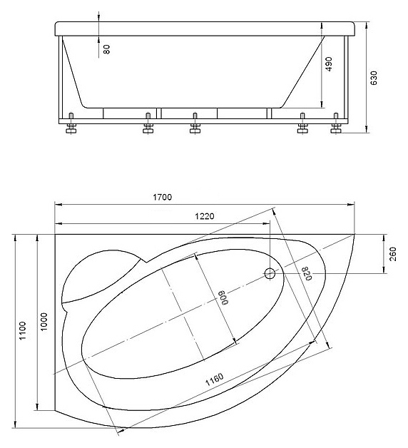 Ванна Aquatek Аякс 2 AYK170-0000085 170х110 см, левая, с фронтальным экраном, вклеенный каркас, акрил