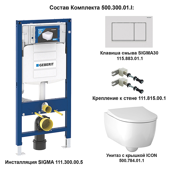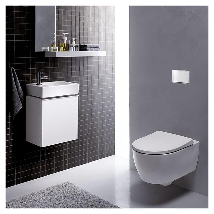 Подвесной унитаз с инсталляцией Geberit ICON 500.300.01.I выполнен в современном стиле. Благодаря подвесной конструкции унитаз не занимает много места в помещении, а свободное пространство под чашей делает уборку в ванной комнате гораздо легче. Безободковое исполнение позволяет предотвратить скопление бактерий и грязи на внутренней поверхности чаши и обеспечивает ее чистоту и гигиеничность использования. Изделие выполнено из санфарфора, который обладает повышенной прочностью и устойчивостью к негативным внешним факторам, а также долгое время сохраняет идеальную белизну и не впитывает запахи и грязь. В комплект поставки входят унитаз 500.784.01.1, сиденье с крышкой с системой плавного опускания, инсталляция 111.300.00.5, уголок монтажный 111.815.00.1 и клавиша смыва 115.883.01.1. Особенности: