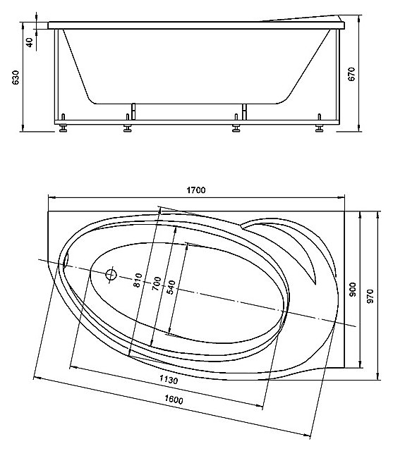 Ванна Aquatek Бетта 170 BET170-0000084 170х97 см, правая, с фронтальным экраном, вклеенный каркас, акрил