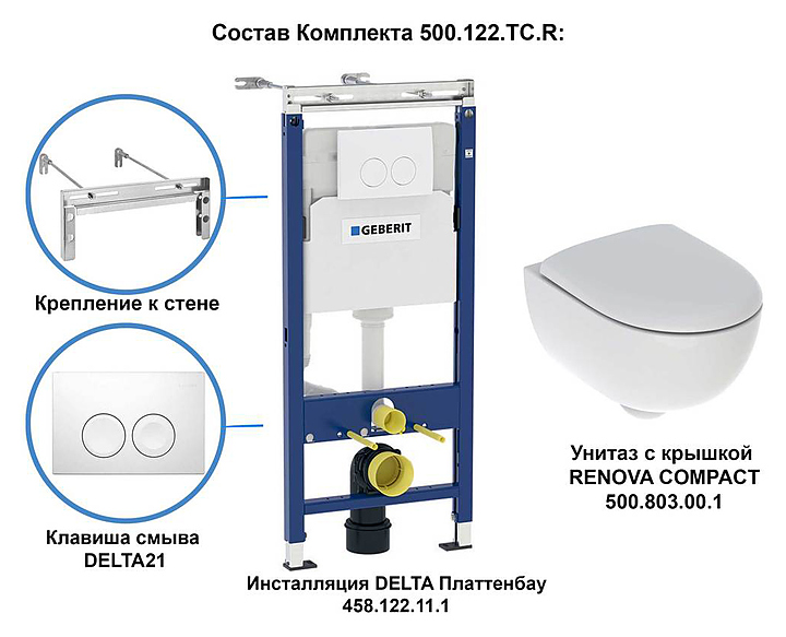 Унитаз подвесной с инсталляцией Geberit RENOVA COMPACT 500.122.TC.R