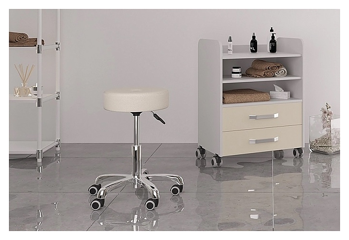 Стул мастера Manzano Torino используется в косметологических центрах, салонах красоты, маникюрных салонах и массажных кабинетах для расположения специалиста при проведении различных процедур, также подходит для домашнего бытового интерьера. Модель оснащена рычагом, установленным под сиденьем для регулировки высоты легким нажатием, и свободновращающимися колесами. Основание и колеса выполнены из хромированного металла, покрытие сиденья - из экокожи. Модель поставляется в 4-х цветовых исполнениях. Особенности: