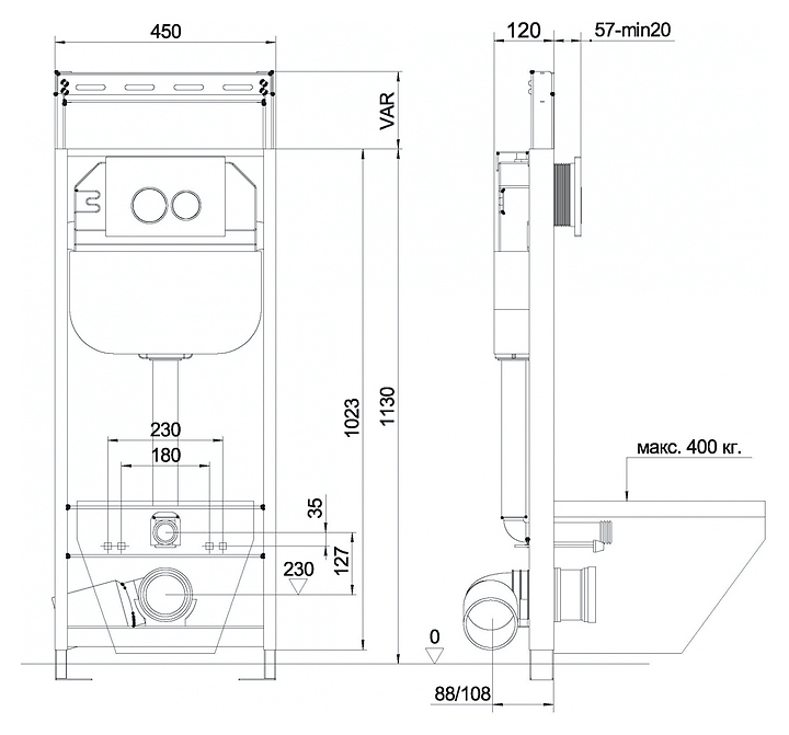 Система инсталляции с бачком Aquanika Basic 10.702.450.00.00 предназначена для установки подвесных унитазов. Модель оснащена вертикальными ребрами жесткости в конструкции рамы для дополнительной опоры в месте давления керамики на стену. Рама выполнена из цельного стального профиля 50x25 мм толщиной 2 мм, которая отличается высокой прочностью, износостойкостью и долговечностью, цельно-выдувной бесшовный бачок - из полиэтилена низкого давления с защитой от конденсата, металлические детали покрыты порошковой эмалью для предотвращения коррозии. В комплект поставки входят все необходимые крепления и патрубки для установки и звукоизоляционный комплект. Особенности:
