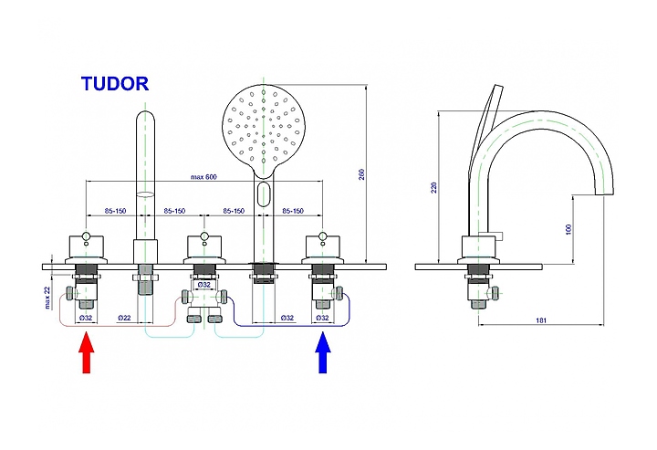 Смеситель на борт ванны с душевым гарнитуром Royal Bath TUDOR RB 104 предназначен для использования в ванных помещениях для подачи горячей и холодной воды. Модель является частью коллекции TUDOR, что позволяет выдержать дизайн ванной комнаты в едином стиле и оснащена выдвижным ручным душем с душевым шлангом. Изделие выполнено из высококачественной латуни, отличающейся прочностью, долговечностью и устойчивостью к перепадам температур. Гибкие шланги подвода воды в комплект поставки не входят и приобретаются отдельно. Особенности: