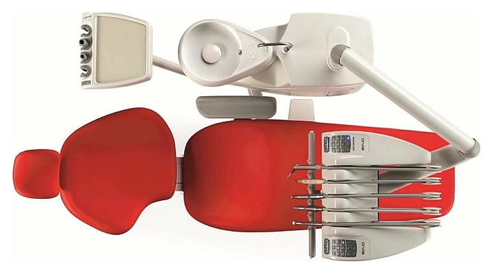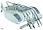 2 аспирационных шланга: слюноотсос, и пылесос, и 2 свободных держателя для дополнительного инструмента: пистолет вода-воздух, полимеризационная лампа, интраоральная камера или эжекторный слюноотсос