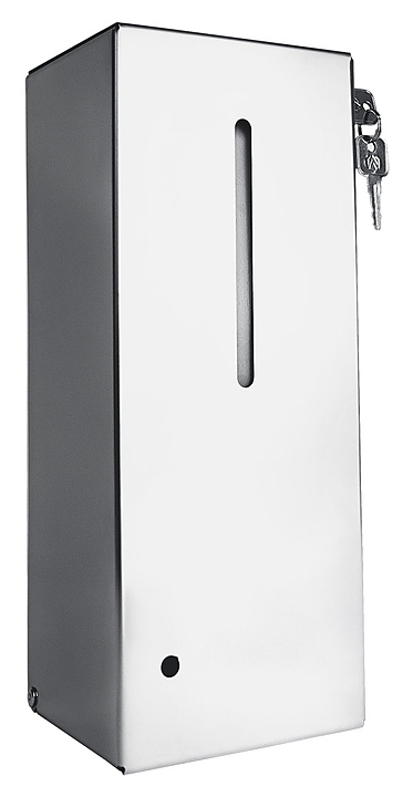 Бесконтактный дозатор для дезинфицирующего средства антивандальный HÖR-007АSSM (глянец) используется на предприятиях общественного питания и торговли, а также в производственных цехах, кинотеатрах, заправках, бизнес-центрах и в других местах с большой проходимостью для подачи средств гигиены жидкой формы. Модель оснащена замком, антивандальной крышкой и вместительным баком для дезинфицируещего средства. Корпус выполнен из нержавеющей стали AISI 304. Особенности: