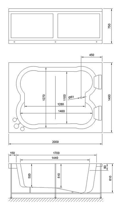 Ванна с каркасом двойная Royal Bath HARDON RB083100 200х150х75 см, акрил