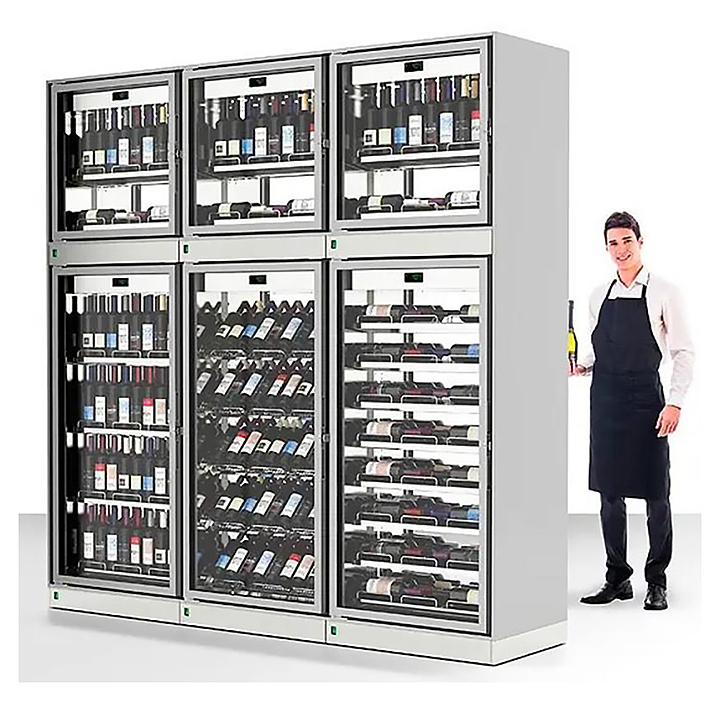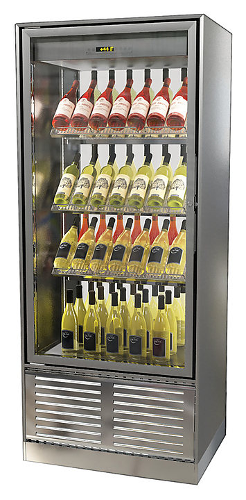 Винный шкаф Enofrigo H2000 GM4C1V модульной системы ENOGALAX предназначен для хранения вина при определенном уровне влажности и температуры в ресторанах, специализированных магазинах, отелях, подсобных складских помещениях, в частных домах или квартирах. Модель оснащена 1 дверью и глухой задней стенкой. Корпус выполнен из ламината, рама двери - из анодированного алюминия, дверь из низкоэмисионного стекла, полки - из поликарбоната и нержавеющей стали. Особенности: