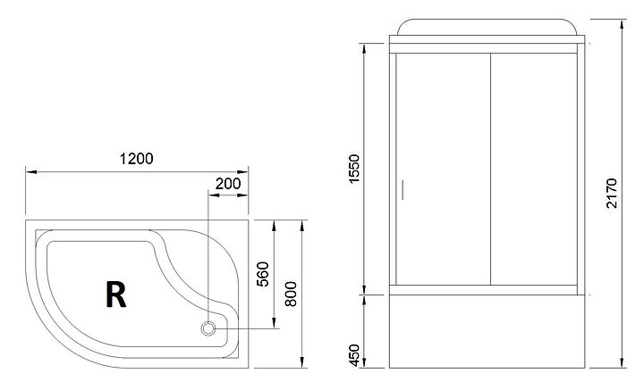 Душевая кабина Royal Bath RB8120BK5-BT-R правая 120х80 см