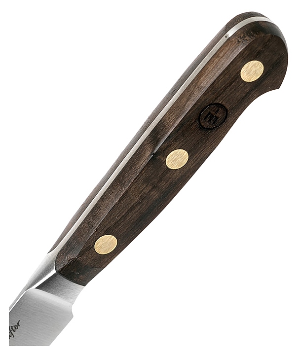 Нож кухонный Wüsthof Crafter 3765/09 предназначен для нарезки овощей и фруктов на предприятиях общественного питания и торговли, а также в частных домах и квартирах. Нож выполнен из кованой нержавеющей молибден-ванадиевой стали X50CrMoV15, отличающейся высочайшим уровнем прочности, повышенной стойкостью к коррозии и оптимальной твердостью, рукоять - из древесины дуба, обладающей высокой степенью износостойкости и невосприимчивости к воздействию влаги или слабых соляных растворов. Клинок изделия изготовлен из цельного куска нержавеющей стали, а деревянные накладки на полный хвостовик - из прочного копченого дуба, который устойчив к воздействию влаги, пищевых соков, а также рассыханию. К стальной основе плашки крепятся латунными заклепками. Особенности: