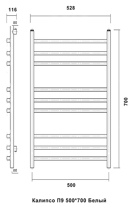 Полотенцесушитель водяной Domoterm Калипсо П9 50x70 см БЕЛ, белый