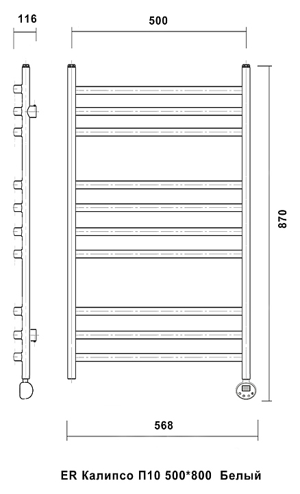 Полотенцесушитель электрический Domoterm Калипсо П10 50x80 см ER БЕЛ, правый, белый