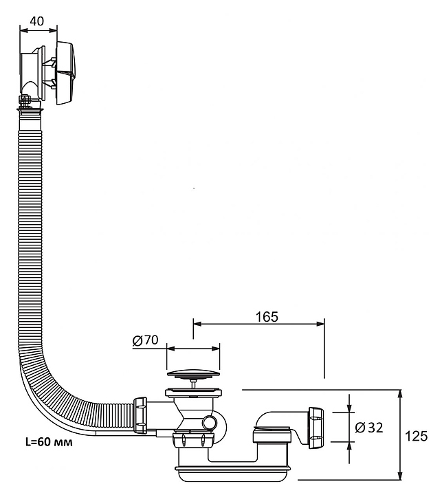 Слив-перелив Royal Bath Cliv-pereliv p/a 60 cm предназначен для установки с ваннами. Особенности: