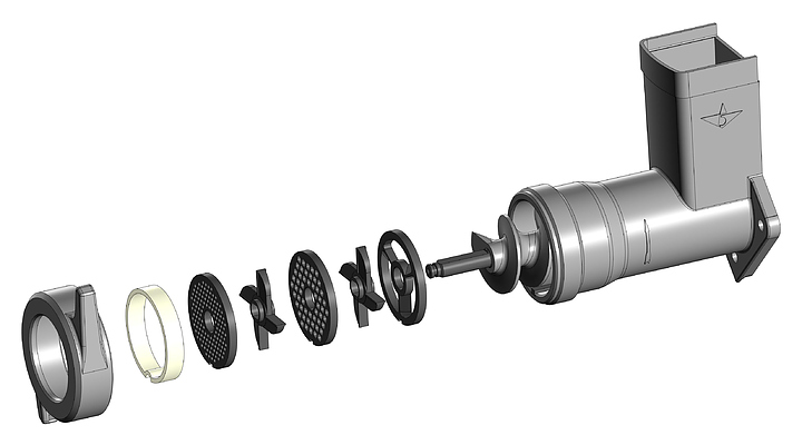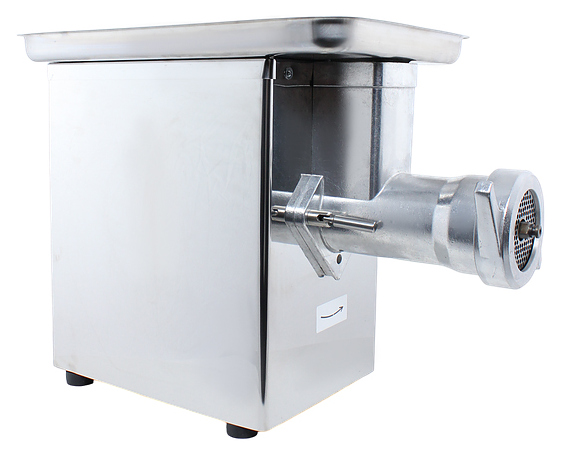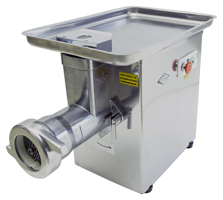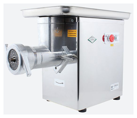Мясорубка БЕЛТОРГМАШ МИМ-600 используется на предприятиях общественного питания, торговли, а также в производственных цехах, деятельность которых связана с выпуском гастрономических товаров, для измельчения мяса и рыбы на фарш, повторного измельчения котлетной массы и набивки колбас. Модель оснащена приводом и съемной чашей. Корпус выполнен из алюминия, облицовка - из нержавеющей стали. В комплект поставки входят нож подрезной, 2 двусторонних ножа, 2 решетки с отверстиями (№2 и № 3), насадка для набивки колбас и толкатель. Особенности: