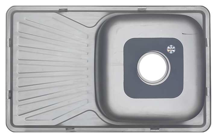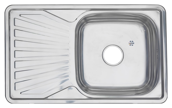 Кухонная мойка MELANA 7848 U 217 t *10 выполнена в современном стиле. Модель оснащена вместительной чашей и усиленными бортиками, что позволяет ставить в мойку даже большую и тяжелую посуду. Оборачиваемость мойки позволяет при установке выбрать расположение крыла слева или справа. Корзинчатый вентиль, расположенный в сливном отверстии, выполняет функцию фильтра. Изделие выполнено нержавеющей стали с полированным покрытием, которое придает мойке привлекательный вид, делает ее более долговечной и устойчивой к появлению царапин, а также способствует стеканию воды со стенок чаши. Сифон, уплотнитель и набор крепежей для монтажа входят в комплект поставки. Особенности: