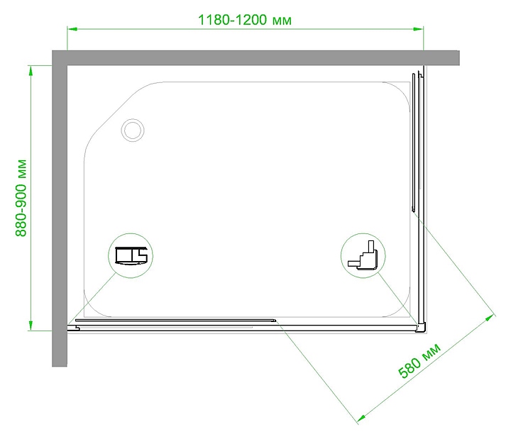 Уголок душевой Royal Bath RB HPD-C-CH 120x90x185 см, рифленое, хромированный профиль