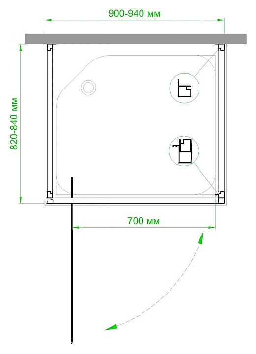 Уголок душевой Royal Bath RB HV-C-CH-P 90х80х185 см, рифленое, хромированный профиль