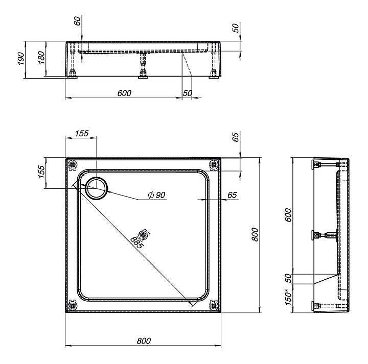 Душевой поддон Aquanet GL180 80x80 впишется в дизайн любой ванной комнаты. Изделие выполнено из акрила, который быстро прогревается, обладает высокими шумоизоляционными характеристиками и антибактериальными свойствами, а также устойчив к механическим повреждениям. В комплект поставки входят ножки, сифон и крепления. Дополнительные характеристики: