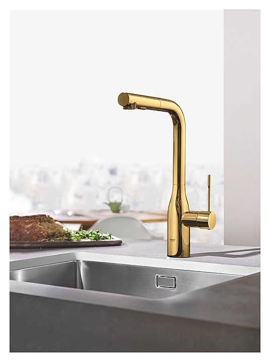 Смеситель для кухни Grohe Essence 30270GL0 предназначен для установки над кухонной мойкой. Продукт оснащен выдвижным длинным изливом для того, чтобы быть направленным ближе к центру мойки для удобства использования. Модель является частью коллекции Essence, что позволяет выдержать дизайн кухни и ванной комнаты в едином стиле. Однорычажный тип управления позволяет очень быстро и плавно регулировать подачу воды одной рукой. Изделие выполнено из высококачественной латуни, отличающейся прочностью, долговечностью и устойчивостью к перепадам температур. Особенности: