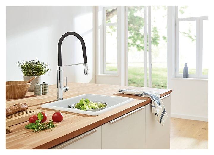 Смеситель для кухни Grohe Concetto Professional 31491000 предназначен для установки над кухонной мойкой и оснащен выдвижным длинным изливом для того, чтобы быть направленным ближе к центру мойки для удобства использования. Модель является частью коллекции Concetto, что позволяет выдержать дизайн кухни и ванной комнаты в едином стиле. Однорычажный тип управления позволяет очень быстро и плавно регулировать подачу воды одной рукой. Изделие выполнено из высококачественной латуни, отличающейся прочностью, долговечностью и устойчивостью к перепадам температур, а покрытие StarLight придает сияющий блеск, который не тускнеет со временем. Особенности: