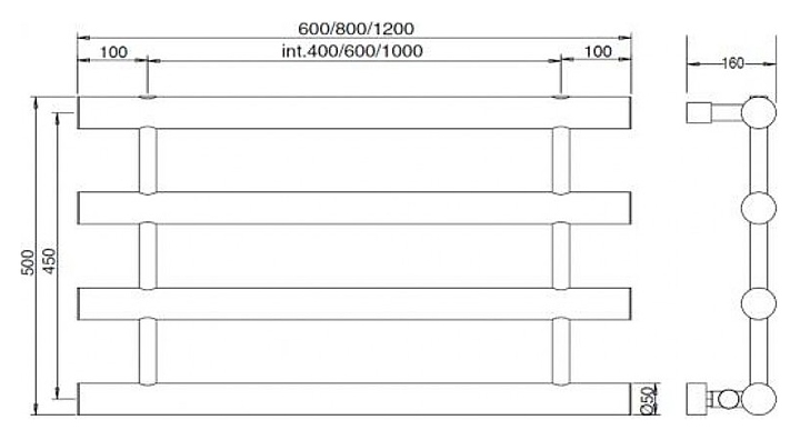 Полотенцесушитель водяной Margaroli Orizzonti 1-442/4 (int. 600) хром