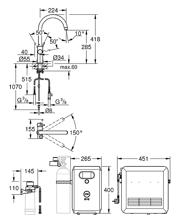 Смеситель для кухни Grohe Blue Professional 31607002 предназначен для подачи и очистки водопроводной воды. Охладитель оснащен цветным дисплеем с управлением и 3 сенсорными кнопками для 3-х видов фильтрованной и негазированной питьевой воды, смеситель - поворотным трубкообразным изливом. Смеситель выполнен из металла с хромированным покрытием StarLight, устойчивым к царапинам и обеспечивающим блеск на много лет. В комплект поставки входят смеситель, охладитель-карбонизатор Blue Professional, фильтр Blue Ultrasafe с головкой, CO2 редуктор и адаптер для баллона с CO2 на 425 гр. Для установки комплекта необходимы вентиляционные отверстия в нижней части кухонного шкафа. Модель совместима с фильтрами S-Size 40404001, M-Size 40430001, L-Size 40412001, Blue 40547001 с активированным углем и 40691002 с магнием и цинком. Особенности: