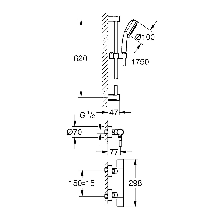 Смеситель для душа настенный термостат с душевым гарнитуром Grohe Grohtherm 800 Cosmopolitan 34768000
