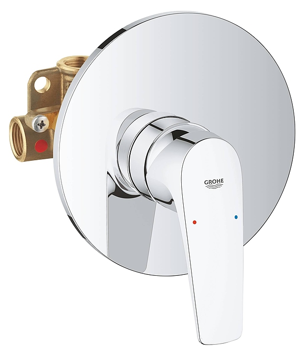 Смеситель для душа встраиваемый Grohe BauFlow 29112000 предназначен для использования в ванных помещениях для подачи горячей и холодной воды. Модель является частью коллекции BauFlow, что позволяет выдержать дизайн кухни и ванной комнаты в едином стиле. Однорычажный тип управления позволяет очень быстро и плавно регулировать подачу воды одной рукой. Изделие выполнено из высококачественной латуни, отличающейся прочностью, долговечностью и устойчивостью к перепадам температур. Встраиваемый механизм и внешняя часть входят в комплект поставки. Особенности: