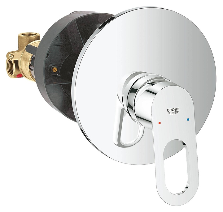 Смеситель для душа встраиваемый Grohe BauLoop 29080000 предназначен для использования в ванных помещениях для подачи горячей и холодной воды. Модель является частью коллекции BauLoop, что позволяет выдержать дизайн кухни и ванной комнаты в едином стиле. Однорычажный тип управления позволяет очень быстро и плавно регулировать подачу воды одной рукой. Изделие выполнено из высококачественной латуни, отличающейся прочностью, долговечностью и устойчивостью к перепадам температур. Встраиваемый механизм и внешняя часть входят в комплект поставки. Особенности: