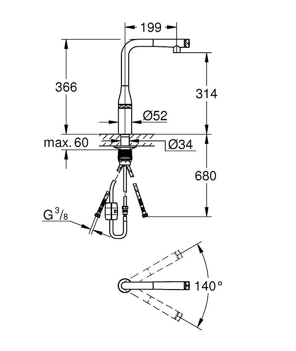 Смеситель для кухни Grohe Essence SmartControl 31615DA0 предназначен для установки над кухонной мойкой и оснащен выдвижным длинным изливом для того, чтобы быть направленным ближе к центру мойки для удобства использования. Модель является частью коллекции Essence, что позволяет выдержать дизайн кухни и ванной комнаты в едином стиле. Изделие выполнено из высококачественной латуни, отличающейся прочностью, долговечностью и устойчивостью к перепадам температур, а покрытие StarLight придает сияющий блеск, который не тускнеет со временем. Особенности: