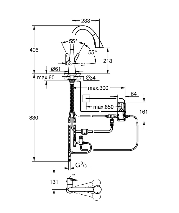 Смеситель для кухни с вытяжным изливом сенсорный Grohe Zedra TOUCH 30219002