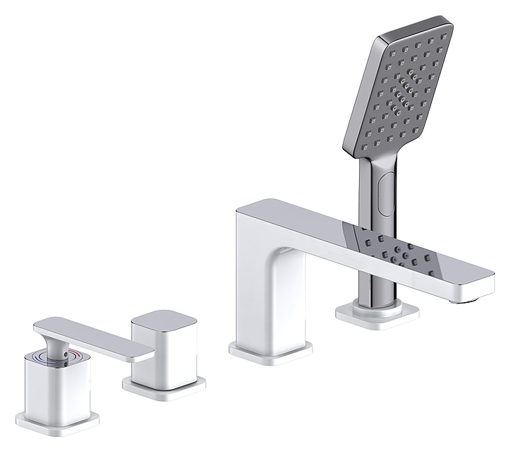 Смеситель для ванны с душем TIMO Torne 4330/00-16Y встраиваемый на борт ванны, 4 отверстия, хром, белый