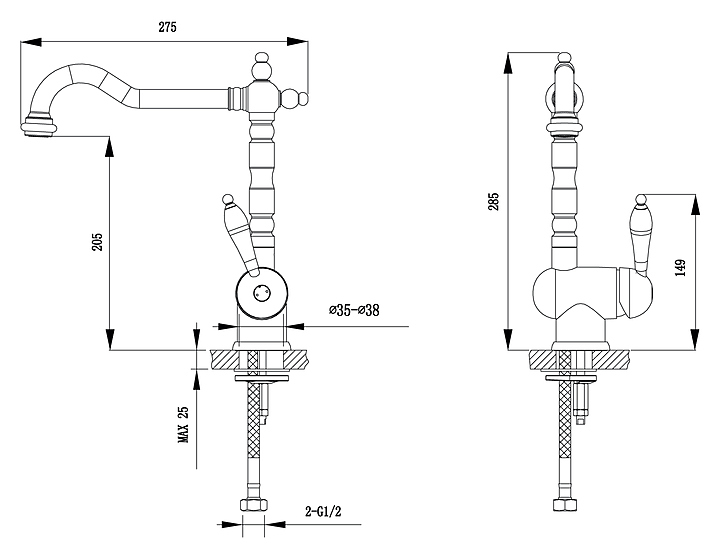 Смеситель для раковины TIMO Morea 2406F предназначен для использования в кухонных помещениях для подачи горячей и холодной воды. Серия выполнена в классическом стиле. Модель оснащена керамическим картриджем, обеспечивающим плавный ход рычага смесителя, контроль и точность при выборе напора и температуры воды, а также аэратором для создания мягкой ровной струи без разбрызгивания. Изделие выполнено из высококачественной латуни, отличающейся прочностью, долговечностью и устойчивостью к перепадам температур. В комплект поставки входят корпус смесителя, гибкая подводка и крепления. Особенности: