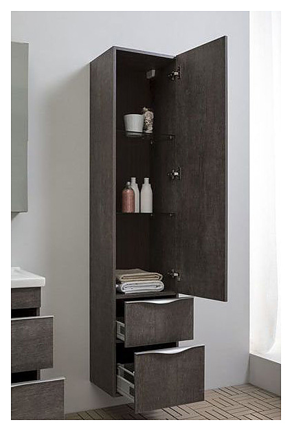 Шкаф-пенал Aquanet Эвора 40 дополнит интерьер ванной комнаты. Благодаря подвесной конструкции модель не занимает много места, что позволяет экономить пространство в небольшой ванной комнате. Шкаф-пенал оснащен 1 распашной дверцей, 2 выдвижными ящиками с доводчиками и 2 стеклянными полками. Корпус изделия выполнен из влагостойкой ЛДСП, а фасад из МДФ покрыт глянцевой краской. Особенности: