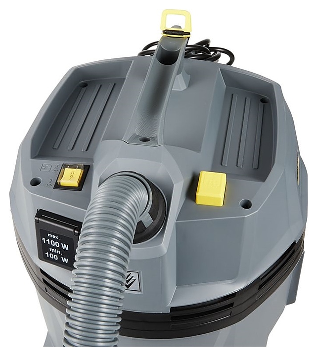 Профессиональный хозяйственный пылесос Karcher NT 22/1 Ap Te L предназначен для сухой и влажной уборки в ходе ремонтно-строительных или реставрационных работ, очистки мягкой мебели, автомобильных салонов, любых типов твердого и текстильного напольного покрытия в помещениях. Модель оснащена удобной рукоятью, интегрированными в отбойник держателями принадлежностей, розеткой для электроинструментов, крюком для кабеля и устойчивым четырехколесным шасси. Корпус и насадки изготовлены из ударопрочного пластика, удлинительные трубки – из хромированного металла, патронный фильтр – из влагостойкого полиэфирного шелка PES, фильтр-мешок – из нетканого материала. Комплектация: