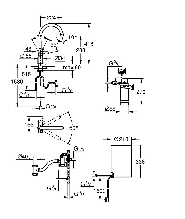 Смеситель для кухни и бойлер M-size Grohe Red Duo 30083DC1