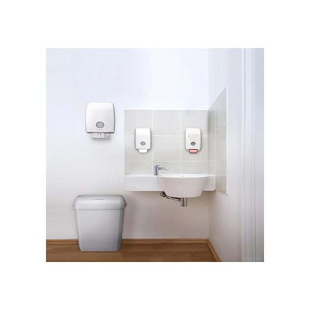 Диспенсер Kimerly-Clark Aquarius 6945 предназначен для размещения и подачи листовых бумажных полотенец в общественных санитарных узлах офисов, предприятий общепита, медицинских учреждений и других мест большой проходимости. Модель оснащена скрытым замком и окошком для контроля над наличием расходного материала. Корпус выполнен из ударопрочного ABS пластика белого цвета. Диспенсер подходит для использования со сложенными листовыми полотенцами 6617, 6689, 6633, 6789, 6669, 6682, 6778, 6710. Особенности: