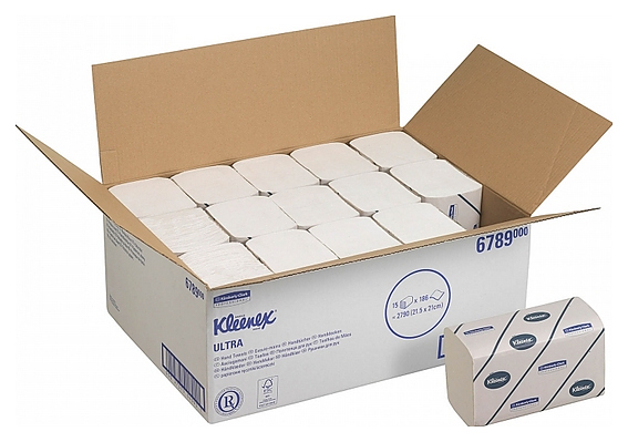 Бумажные полотенца Kimberly-Clark Kleenex 6789 предназначены для использования с диспенсерами для сложенных листовых бумажных полотенец в общественных санитарных узлах офисов, предприятий общепита, медицинских учреждений и других мест большой проходимости. Полотенца изготовлены из 62% целлюлозы и 38% переработанной целлюлозы. В комплект поставки входит 15 пачек по 186 листов. Особенности: