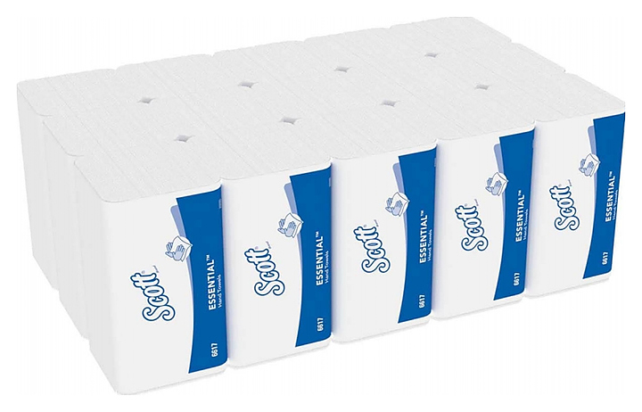 Бумажные полотенца Kimberly-Clark Scott Essential 6617 предназначены для использования с диспенсерами для сложенных листовых бумажных полотенец в общественных санитарных узлах офисов, предприятий общепита, медицинских учреждений и других мест большой проходимости. Полотенца изготовлены из 100% переработанной целлюлозы. В комплект поставки входит 15 пачек по 340 листов. Особенности: