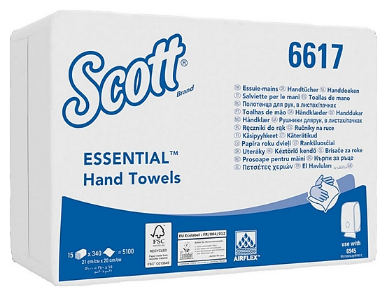 Полотенца бумажные для диспенсера Kimberly-Clark Scott Essential 6617 листовые 21х20 см, 15х340 листов