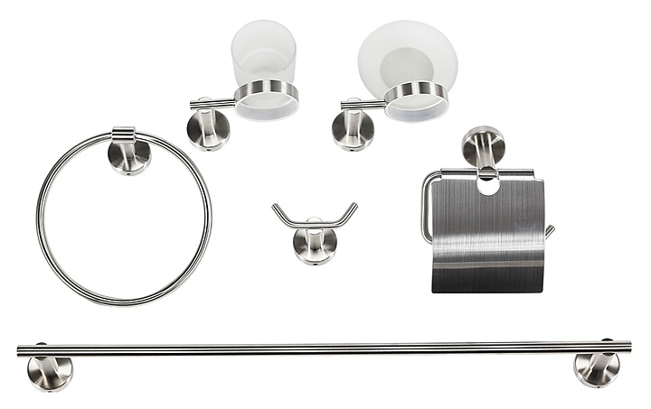 Набор аксессуаров для ванной MELANA MLN-861 используется в ванных комнатах. Штанга комплектуется надежным креплением из нержавеющей стали, которое защитит интерьер ванной комнаты от появления ржавых подтеков на стенах в местах крепления. Изделия выполнены из нержавеющей стали, которая обладает высокой устойчивостью к коррозии, плесени и грибку и прочного матового стекла. Комплектация: