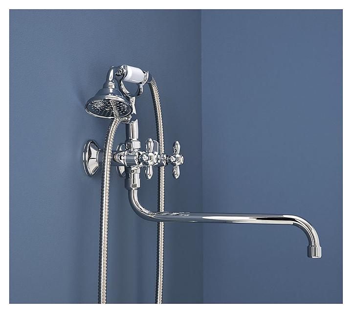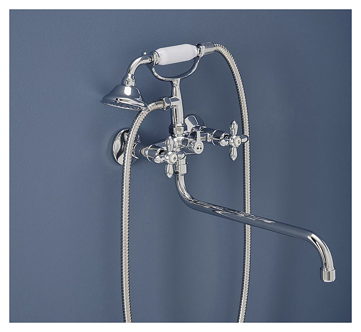 Смеситель для ванны с душем Aquanet Opera SD98909A предназначен для использования в ванных помещениях для подачи горячей и холодной воды. Серия Opera выполнена в классическом стиле. Модель оснащена керамической кран-буксой, обеспечивающей плавный ход вентилей смесителя и открытие/закрытие потока воды при половине оборота. Изделие выполнено из латуни, отличающейся прочностью, долговечностью и устойчивостью к перепадам температур. В комплект поставки входят ручной душ и душевой шланг. Особенности:
