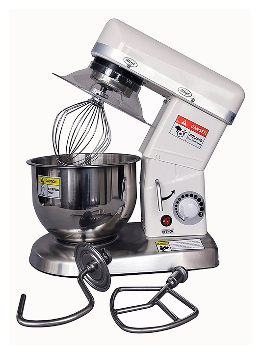 Планетарный миксер VIATTO VA-SMB5W предназначен для замеса различных видов теста, а также для взбивания кремов, муссов и приготовления пюре, соусов и коктейлей на предприятиях общественного питания и торговли. Модель оснащена съемной дежой. Корпус изготовлен из окрашенного металла, дежа - из нержавеющей стали, защитная крышка - из пластика. В комплект поставки входят 3 насадки: крюк и лопатка из нержавеющей стали, венчик из алюминия и нержавеющей стали. Дополнительные характеристики: