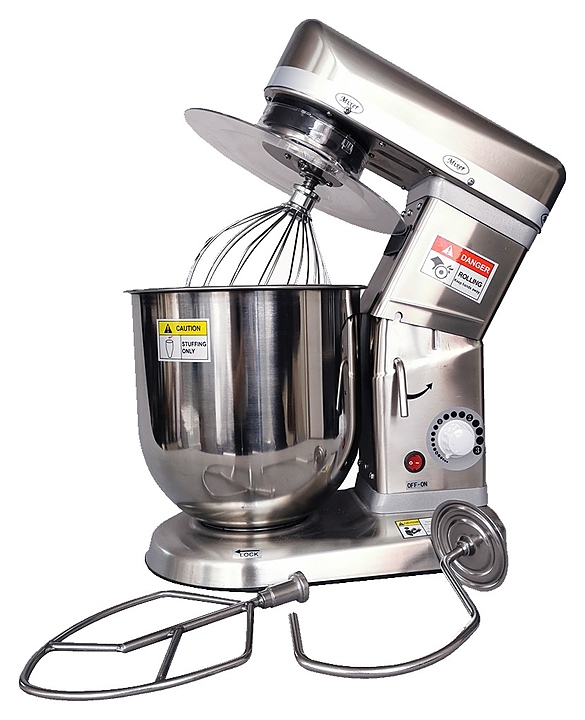 Планетарный миксер VIATTO VA-SMB10SS предназначен для замеса различных видов теста, а также для взбивания кремов, муссов и приготовления пюре, соусов и коктейлей на предприятиях общественного питания и торговли. Модель оснащена съемной дежой. Корпус и дежа изготовлены из нержавеющей стали, защитная крышка - из пластика. В комплект поставки входят 3 насадки: крюк, лопатка и венчик. Дополнительные характеристики: