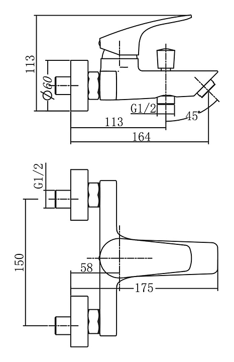 Смеситель для ванны с душем Aquanet Static AF330-20C короткий излив