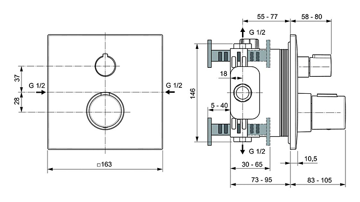 Смеситель для душа Ideal Standard Ceratherm Т100 A6956XG предназначен для использования в ванных помещениях для подачи горячей и холодной воды. Металлическая рукоятка оснащена функцией ограничения максимальной температуры горячей воды для предотвращения ожогов. Изделие выполнено из высококачественной латуни, которая отличается долговечностью и устойчивостью к перепадам температур, а накладка из прочного металла. В комплект поставки входят функциональный комплект и накладка для настенного монтажа. Набор EASY-BOX A1000NU в комплект поставки не входит и приобретается отдельно. Особенности:
