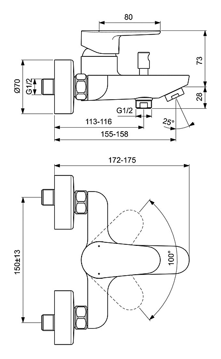 Смеситель для ванны с душем Ideal Standard CERAFINE O BC500XG предназначен для использования в ванных помещениях для подачи горячей и холодной воды. Серия CERAFINE O выполнена в современном стиле. Модель оснащена керамическим картриджем, обеспечивающим плавный ход рычага смесителя, контроль и точность при выборе напора и температуры воды, а функция ограничения максимальной температуры горячей воды предотвращает ожоги. Аэратор насыщает водный поток воздухом и создает струю воды без брызг. Изделие выполнено из латуни, отличающейся прочностью, долговечностью и устойчивостью к перепадам температур. Особенности: