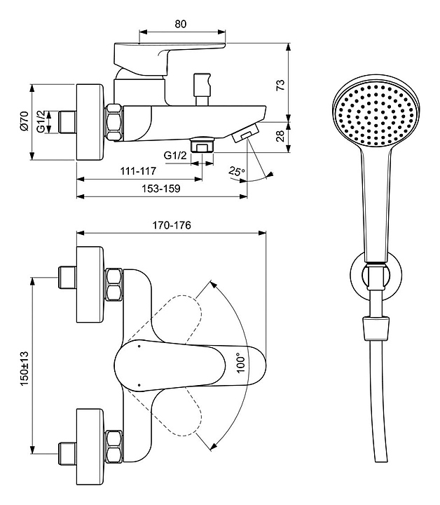 Душевой комплект Ideal Standard CERAFINE O BC706XG используется в ванных комнатах. Серия CERAFINE O выполнена в современном стиле. Модель оснащена керамическим картриджем, обеспечивающим плавный ход рычага смесителя, контроль и точность при выборе напора и температуры воды, а функция ограничения максимальной температуры горячей воды предотвращает ожоги. Изделие выполнено из высококачественной латуни, которая отличается прочностью, долговечностью и устойчивостью к перепадам температур. В комплект поставки входят смеситель, ручной душ с держателем и шланг. Особенности: