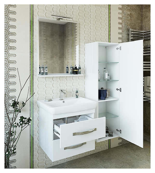 Гарнитур Sanflor Одри 70 см, 4 предмета, с подвесной тумбой, с правост. пеналом, белый